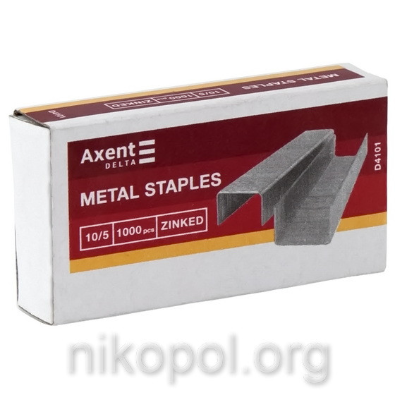 Металеві скоби Delta by Axent (D4101)завширшки 10мм. для канцелярського степлера. В упаковці 1000шт.Характеристики