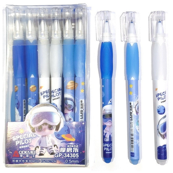 Гелева ручка "GP-34305" із серії "пише-стирає". Круглий пластиковий корпус різних кольорів, стержень змінний, товщина лінії 0,5мм, чорнило синє, виготовлене з нетоксичних матеріалів, є гумовий грип для більш комфортного захоплення.Характеристики